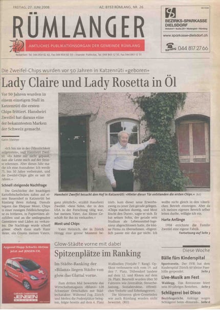 Eigenartigerweise begann die Schweizer Erfolgsstory der Zweifel-Kartoffelchips ebenfalls in diesem Weiler. Hans Meier, Onkel 2. Grades des bekannten Chips-Unternehmers Hansheinrich Zweifel, stellte hier die ersten Chips der Schweiz her. Zweifel übernahm die Produktion und gründete später die Zweifel Pomy-Chips AG. Und die Beiden sind mit Kleinjogg verwandt!
